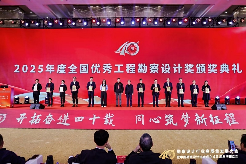 近日,勘察設計行業高質量發展大會暨中國勘察設計協會成立40周年慶祝活動在北京舉行,會上發布了2025年度全國優秀工程勘察設計獎評選結果。公司榮獲全國優秀工程勘察設計獎一等獎1項、二等獎1項。
